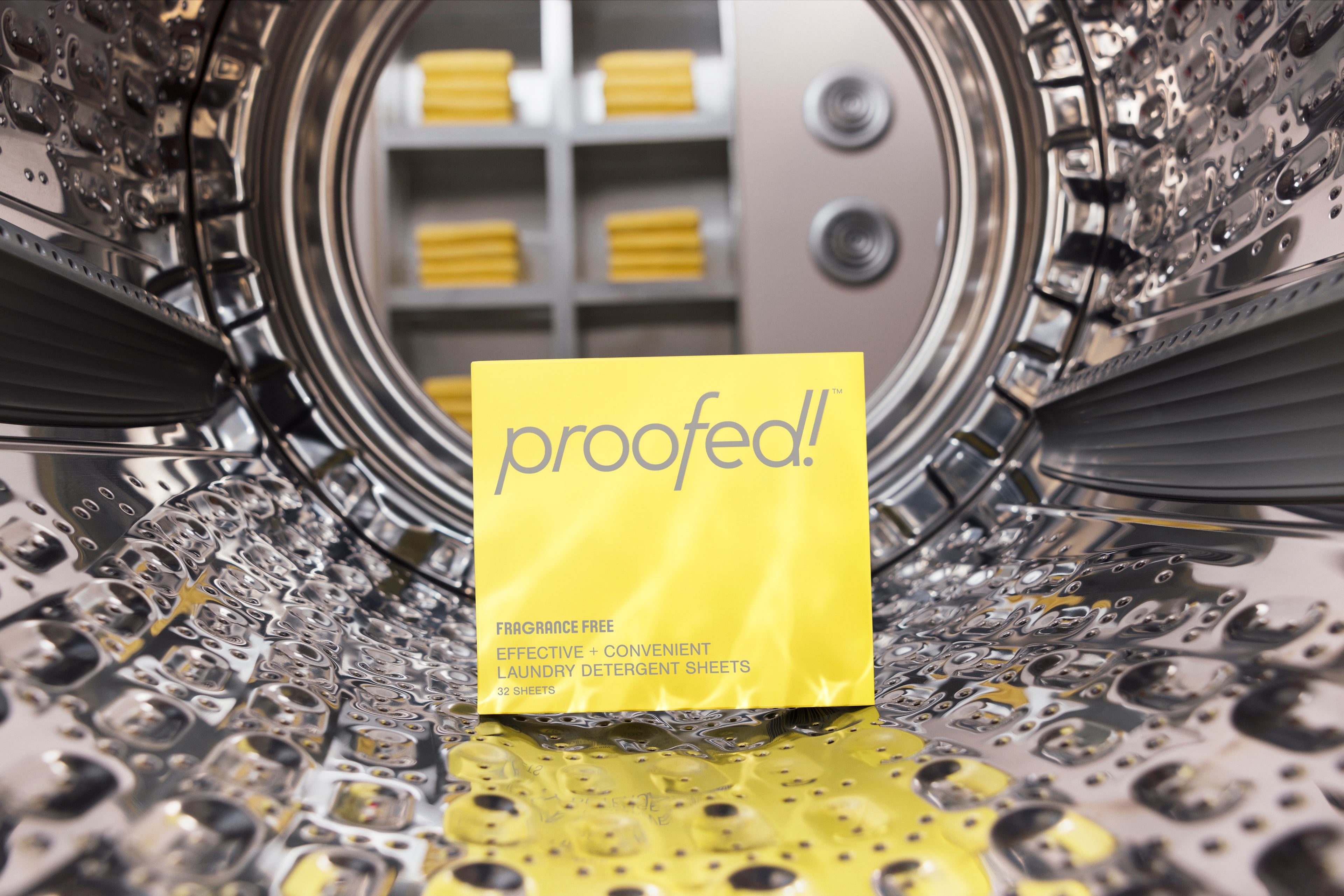 Proofed! Laundry Detergent Sheets give you all the cleaning power — without plastic, spills, or guesswork. Just drop one in and you’re done.